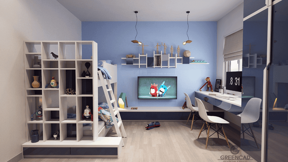 - Ở phòng ngủ con trai lại là một màu sắc riêng, cá tính riêng. Chất nam tính được thể hiện thông qua việc lựa chọn màu sắc cũng như bài trí đồ đạc. Sự gọn gàng, ngăn nắp tới từng chi tiết là tư tưởng chủ đạo trong thiết kế nội thất. Tối ưu hóa không gian phòng ngủ bằng việc thiết kế nội thất đa năng, chi tiết thiết kế đơn giản, đề cao đường nét thẳng, mạch lạc, hình khối vuông vắn thường thấy trong phong cách thiết kế nội thất hiện đại.